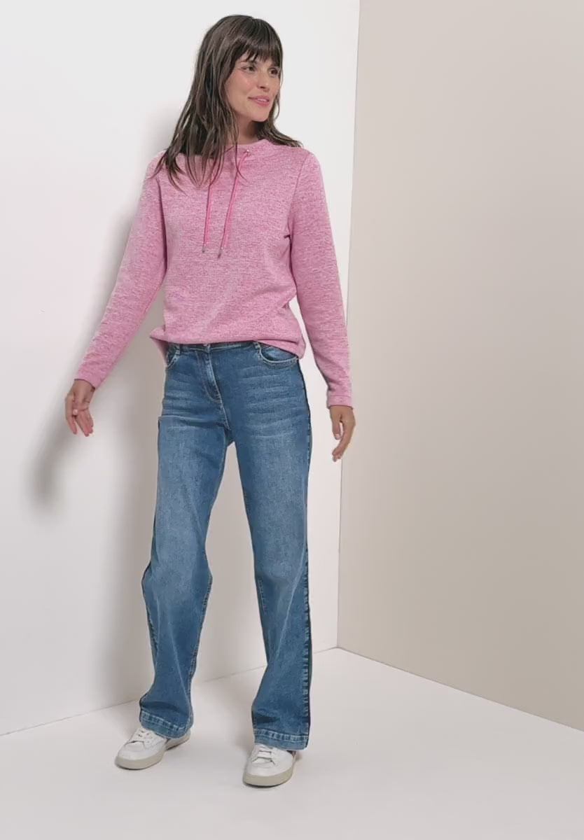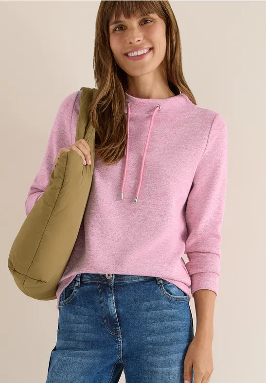 This women's ribbed shirt from CECIL impresses with its soft viscose blend and mottled look. The funnel neck with drawstring gives the shirt a modern touch, while the comfortable fit ensures a feel-good factor. Perfect for stylish casual looks.
