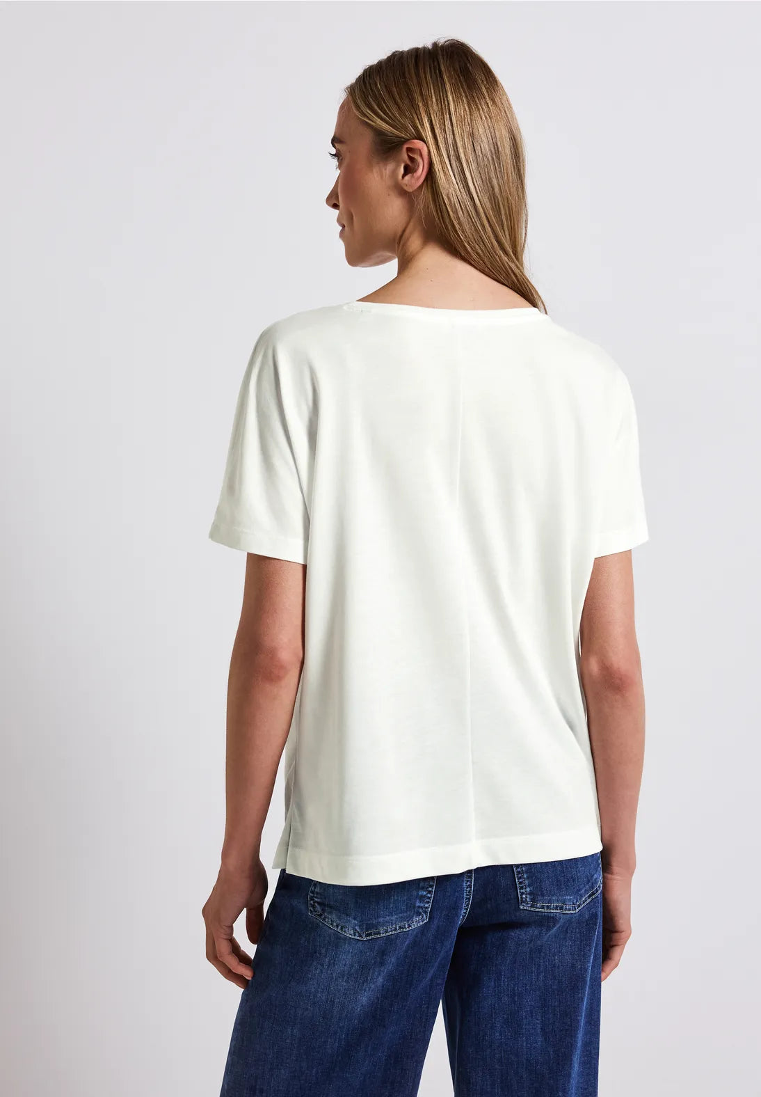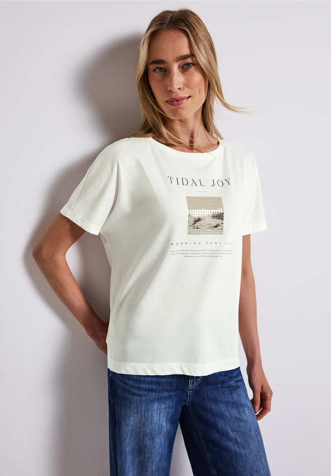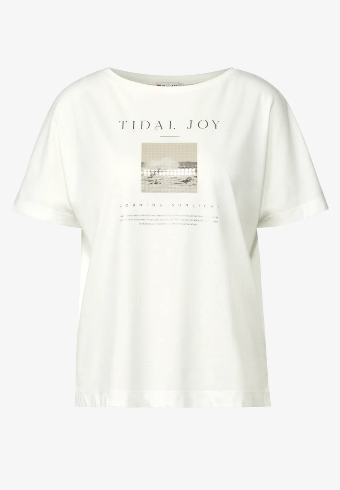 With its glossy photo print, this women's T-shirt from Street One is sure to turn heads. The soft cotton and modal blend ensures a comfortable fit, while dropped shoulders and a round neckline casually round off the look. Ideal for relaxed styles with a guaranteed eye-catcher.