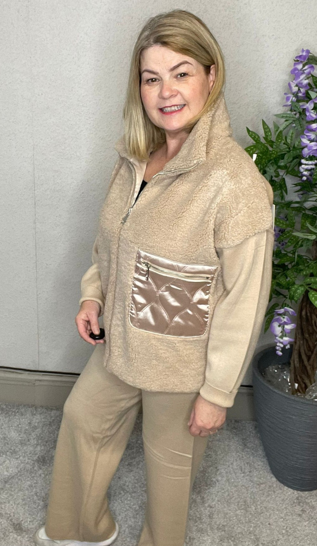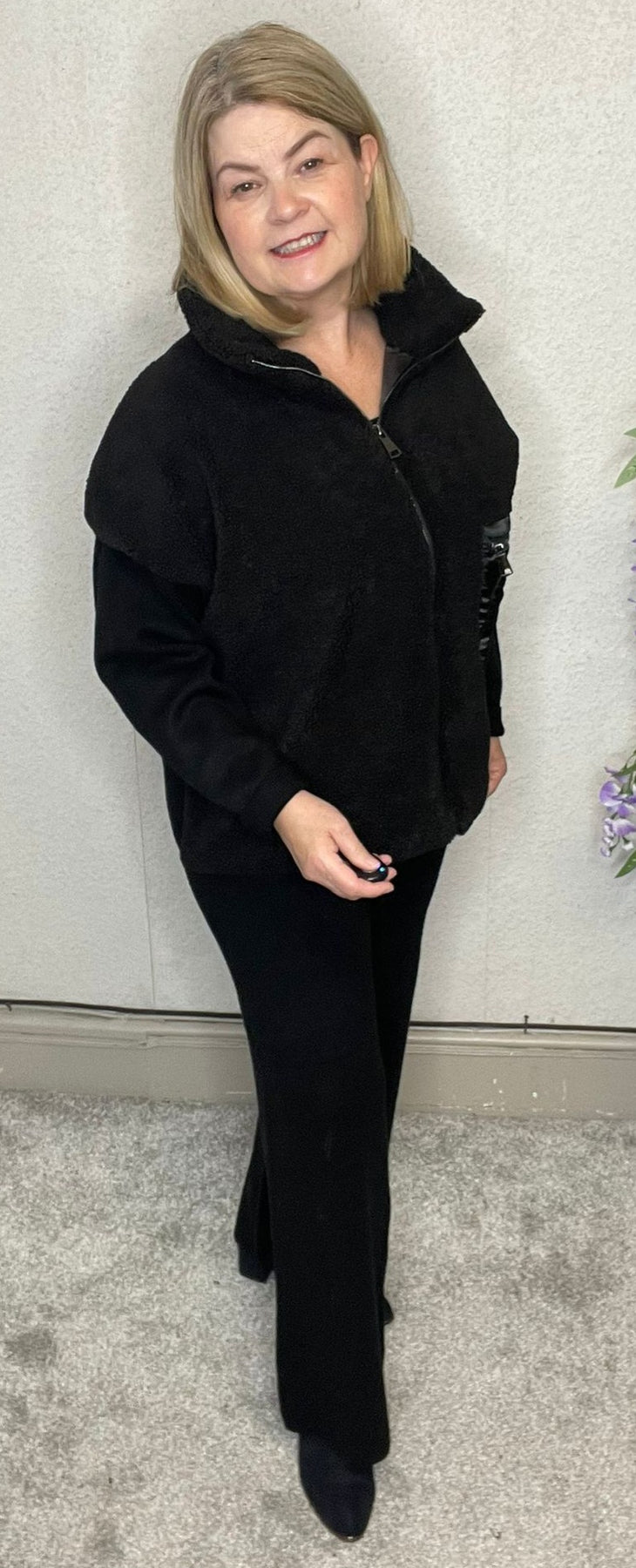elastic waist trousers and zip jacket