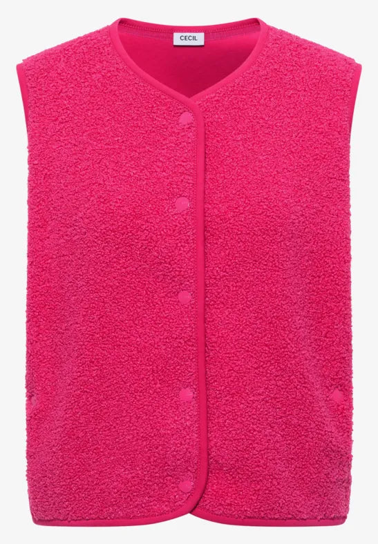 The wool-look vest from CECIL for women is an ideal layering piece for versatile casual outfits. The sleeveless design and round neck make it particularly easy to combine with other pieces. Side pockets with buttons emphasize its practicality. Perfect for throwing on on cooler days for a relaxed look