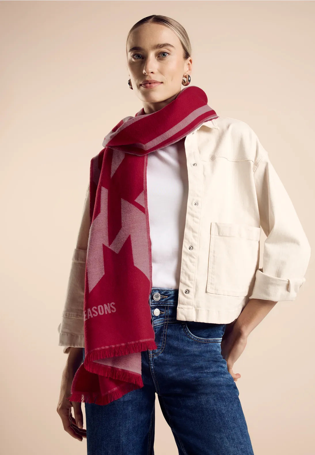 The long jacquard scarf from Street One for women offers a stylish mix of patterns and a soft feel. The graphic pattern sets fashionable accents and makes this scarf a real eye-catcher. Perfect for cool days, it offers you warmth and comfort in a trendy design.