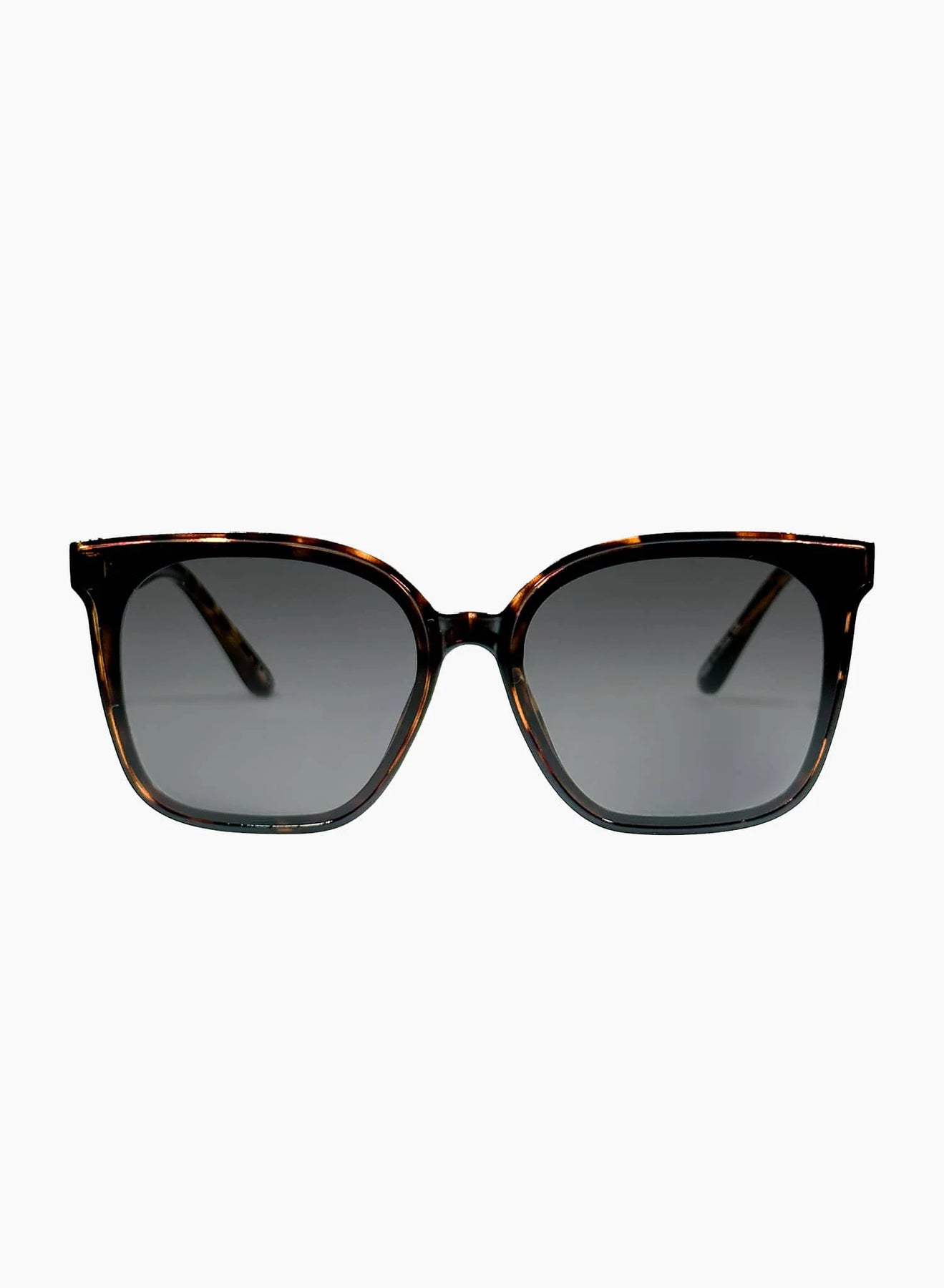 Oversized classic square sunglasses in rich brown tortoiseshell, paired with gradient smoke lenses. A bold yet timeless silhouette.