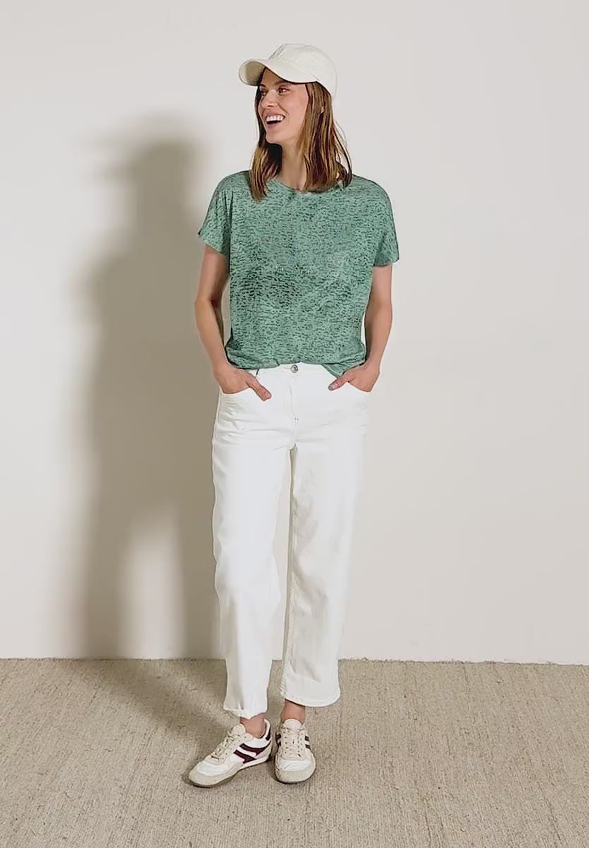 This women's shirt from CECIL impresses with its fashionable burnout look and wording artwork. The round neck and short sleeves ensure a light, airy feel. A stylish statement piece with a pleasantly soft feel.